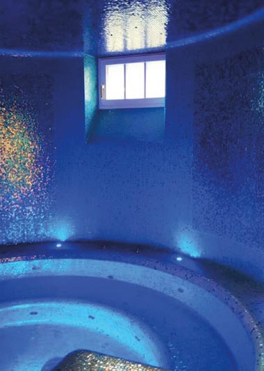 Dampfbad mit Mosaik in beige grün